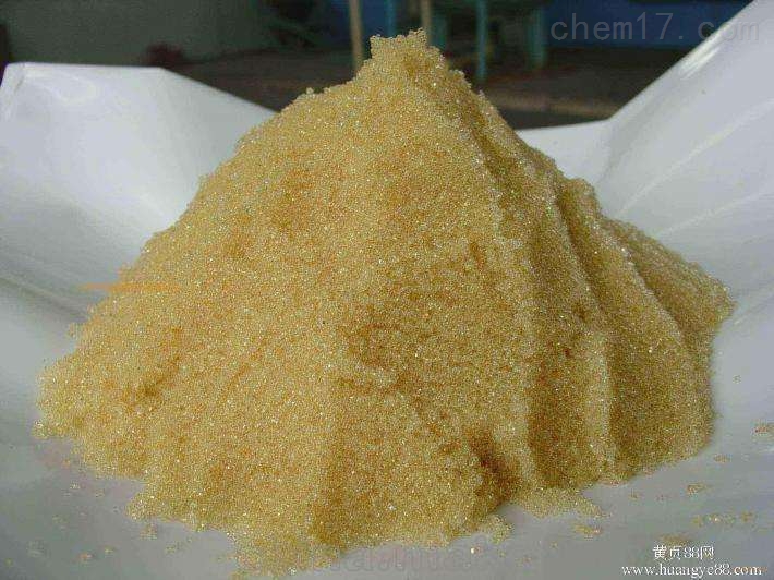 通常是球形颗粒物。离子交换树脂的全名称由分类名称、骨架(或基因)名称、基本名称组成。孔隙结构分凝胶型和大孔型两种,凡具有物理孔结构的称大孔型树脂,在全名称前加“大孔”。分类属酸性的应在名称前加“阳”,分类属碱性的,在名称前加“阴”。如:大孔强酸性苯乙烯系阳离子交换树脂。使用树脂体积20%的200号溶剂汽油和一定量的非离子表面活性剂TX-10(聚氯乙烯辛基酚),再添加上交换器后,温度保持在45-50℃,混合物用无油压缩机空气搅拌和洗涤,30分钟后,再添加一定量的TX-10表面活性剂乳化油,***后,从交换器顶部进水,从底部排出乳液,直到清洗干净,有机物很少污染强酸性阳树脂,仅能在阳树脂颗粒的粪便表面找到沉积物。
